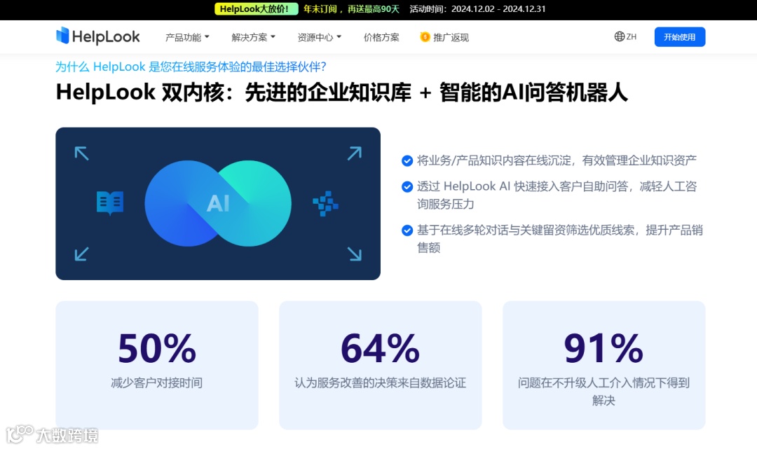 HelpLook(www.helplook.net)是一款快速搭建AI知识库的系统,具备强大功能:快速精准的知识检索、灵活定制的文档系统,以及AI智能搜索。