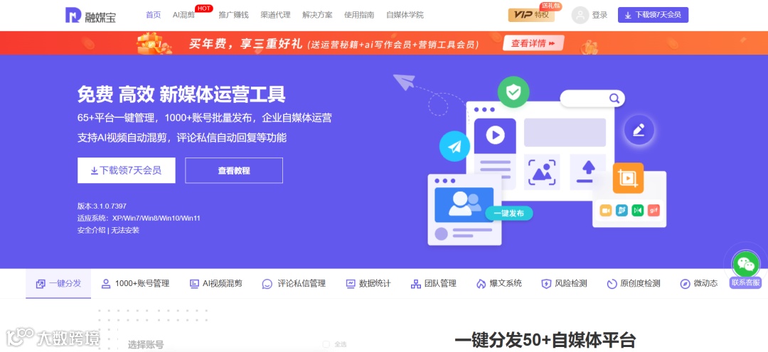 融媒宝是一款功能强大的自媒体内容管理与分发工具,支持50多个主流自媒体平台,实现了账号的集中管理、内容的一键同步发布。它不仅提供图文、视频等多种内容形式的编辑功能,还内置了爆文中心、原创度检测等实用工具,帮助自媒体人高效创作优质内容。
