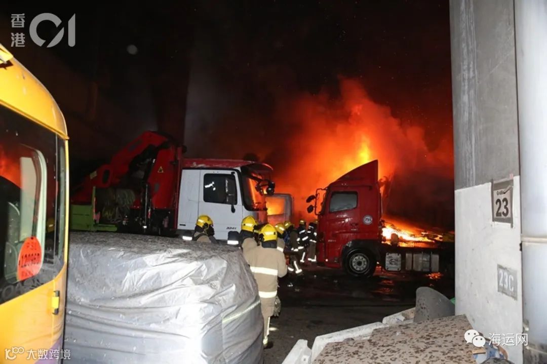 香港葵涌货柜码头发生严重货车火灾