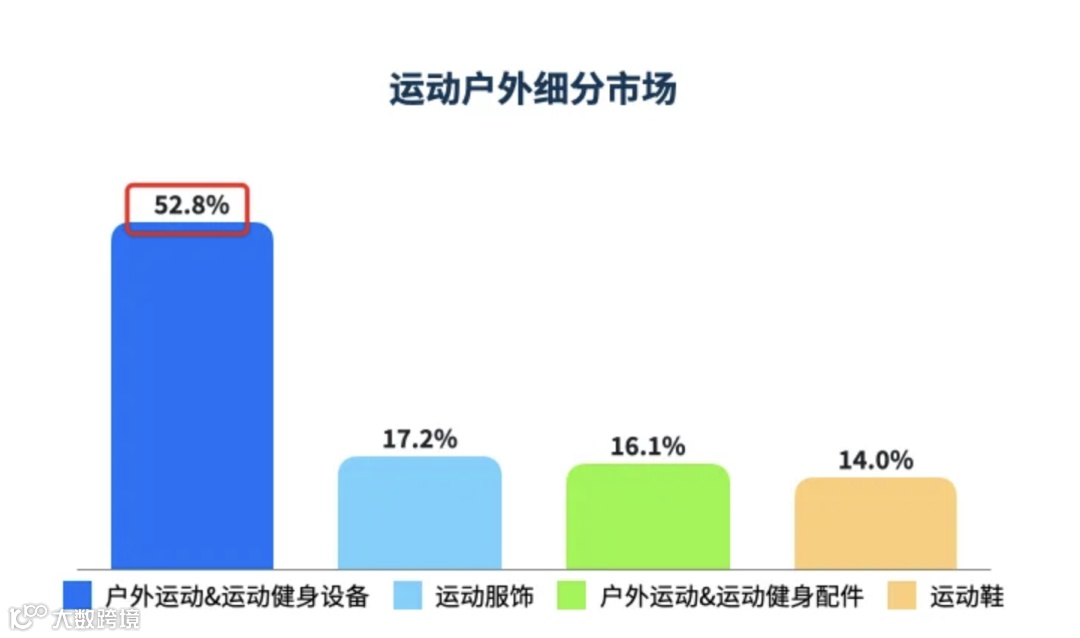 其中,户外&运动健身设备品类的总销售额占比约52.8%。