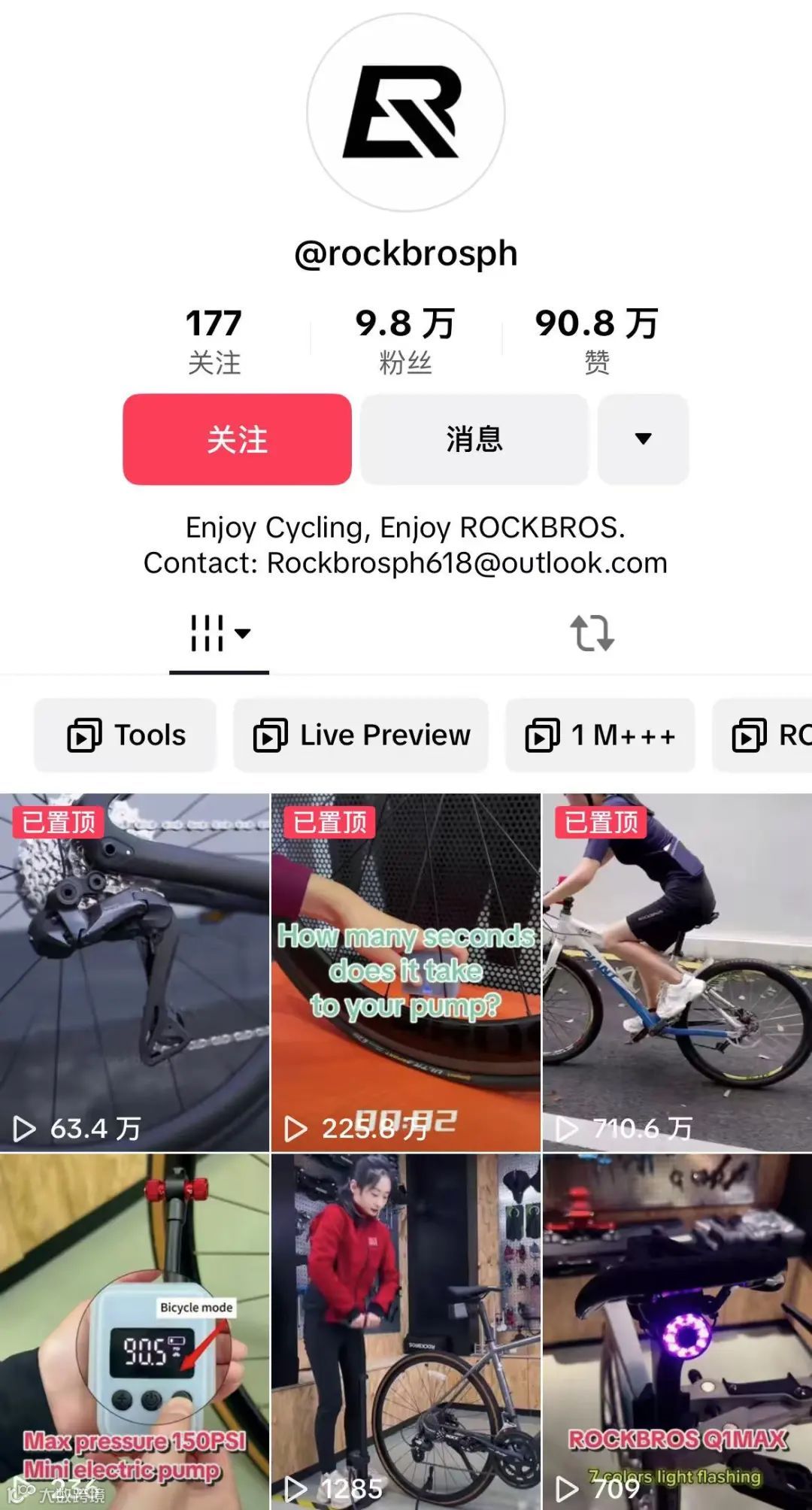 Rockbros 菲律宾TikTok账号目前拥有近10万粉丝量,9万多点赞量。