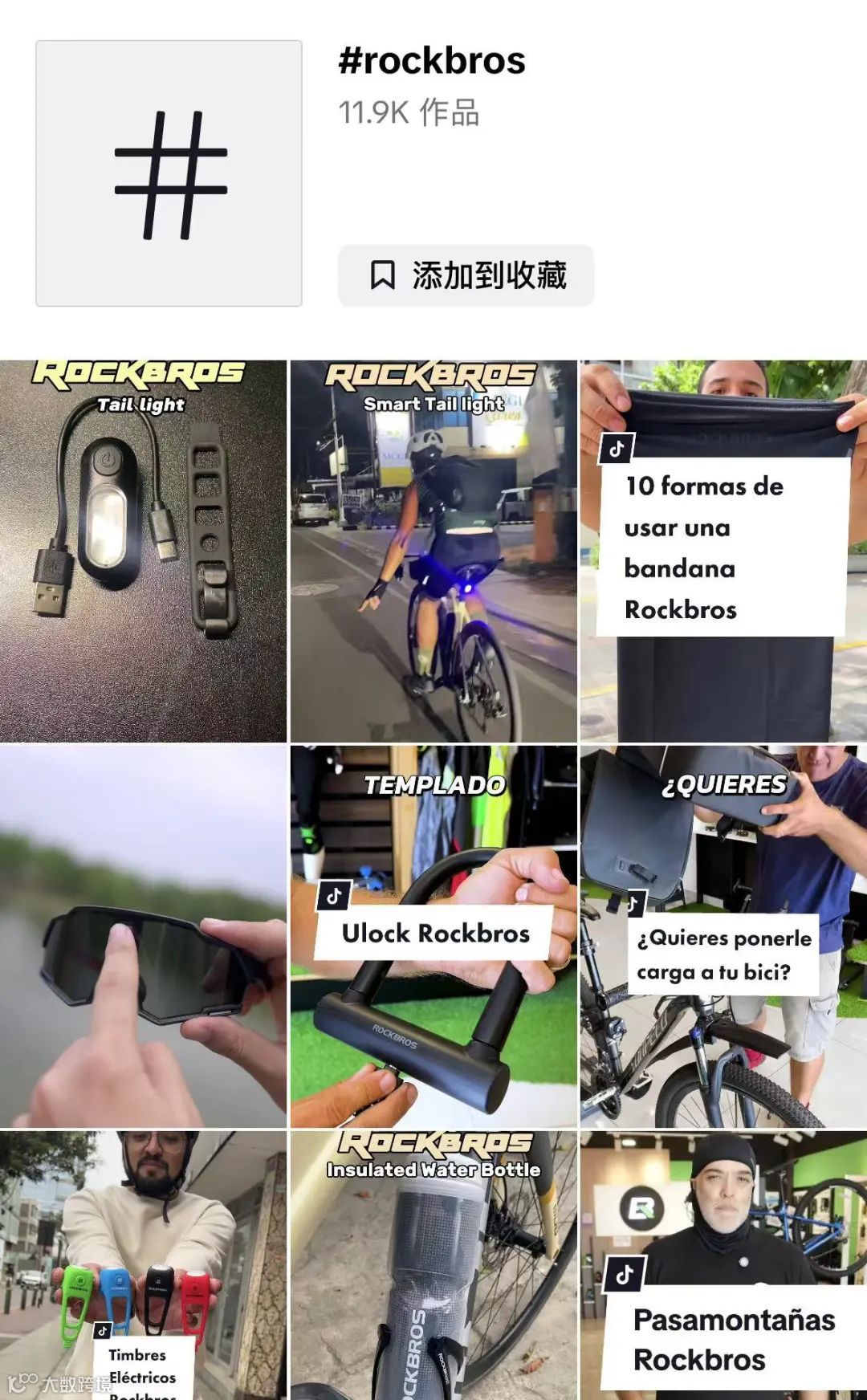 在TikTok上,标签#rockbros已经积累了将近1.2万个作品。