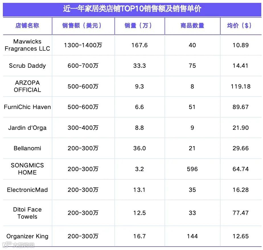 03. 家居GMV TOP 10店铺门槛在100万美元