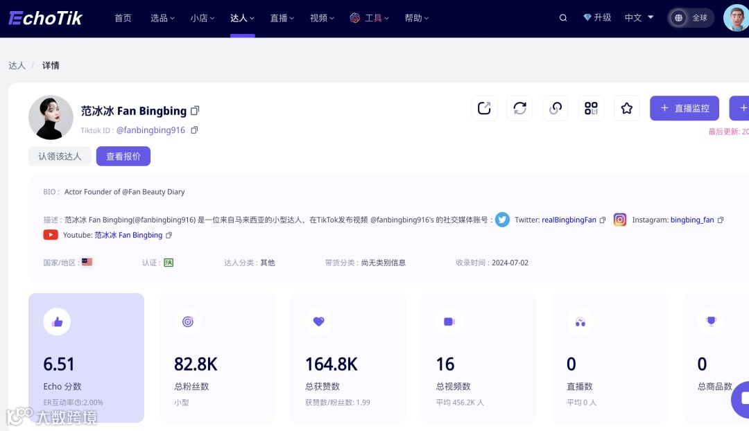 截至目前,范冰冰还未像其他出海网红一样开启直播带货等动作。