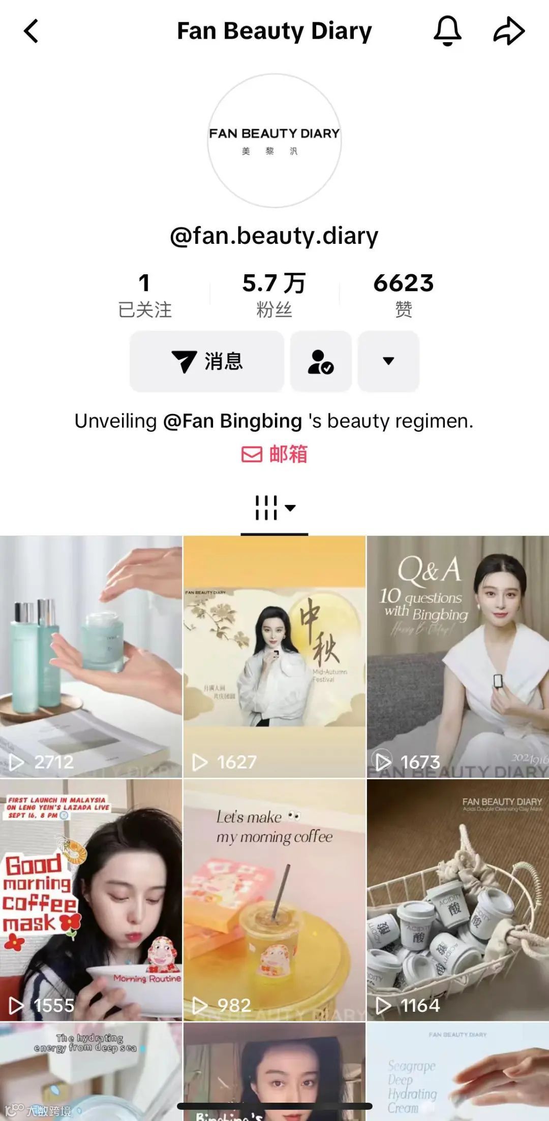 之后6月份,范冰冰正式入驻TikTok,官方品牌账号Fan Beauty Diary仅发布2条短视频就新增5.5万+粉丝,首条正式宣布入驻的视频获得了53万+的播放量。