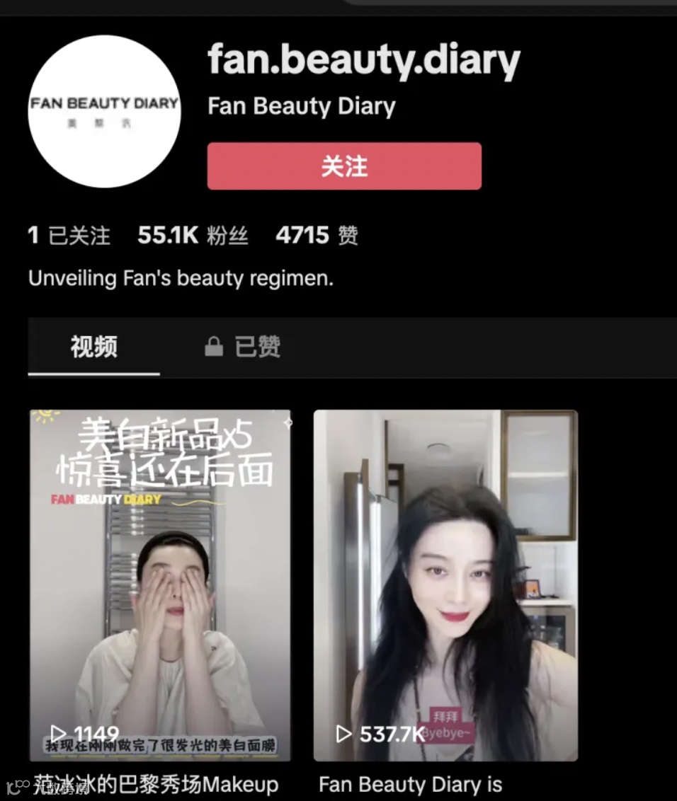 在TikTok平台,官方账号Fan Beauty Diary@fan.beauty.diary仅发布两条短视频就已经获得了5.5万+粉丝,第一条视频的发布时间是6月1日。