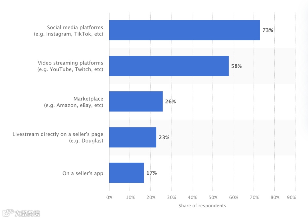 根据statista的一项研究显示,TikTok Live 等社交媒体平台是英国最常用的直播商务渠道,已被近四分之三的受访购物者所接受。