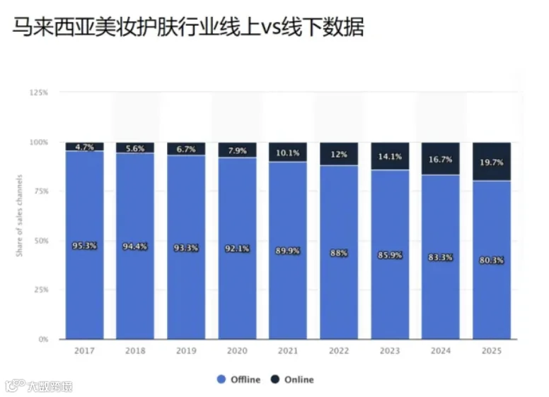 根据statista数据显示,2023年,马来西亚护肤品线上渗透率达到14%,和中国市场2014年的情况相类似,目前国内护肤品市场线上渠道占比增长到了31%,马来西亚市场的线上增长空间很大,每年线上渠道增速达到15%-20%。