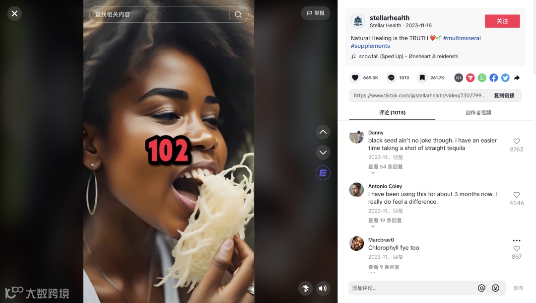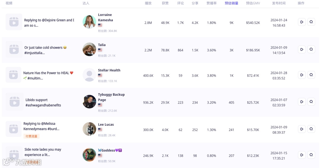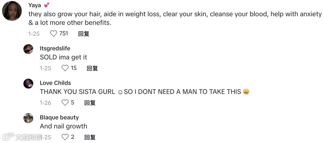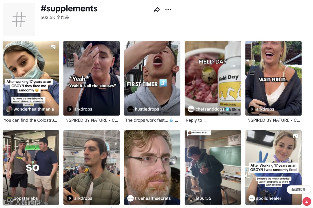 健康类目在上周GMV和销量增长最为迅速,取代了运动与户外在本周排名Top 5,带货商品均价为45.2美元;主要的热销商品为各类营养保健品,包括:排毒药、海藻粉、胶原蛋白肽、草本瘦身药、维生素补剂及镁片等。