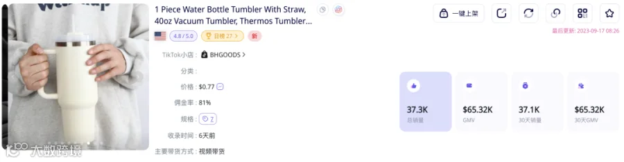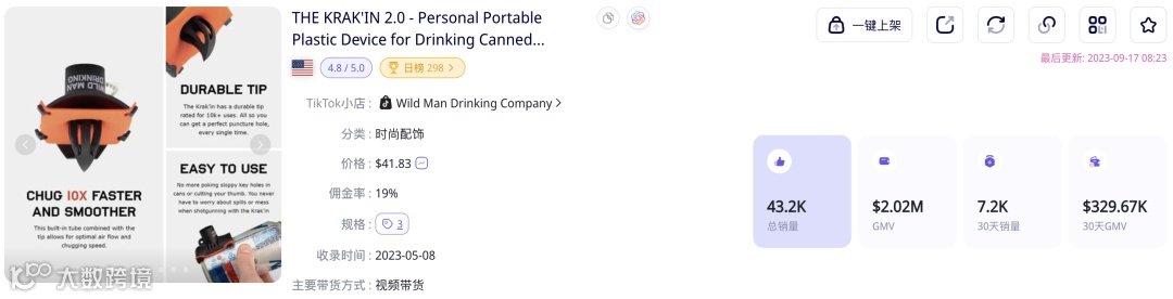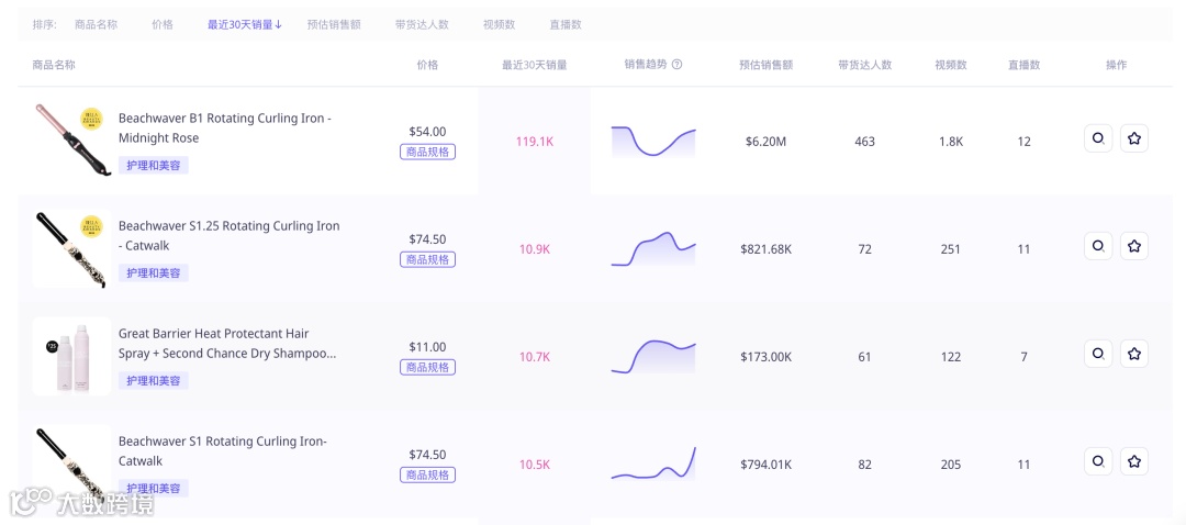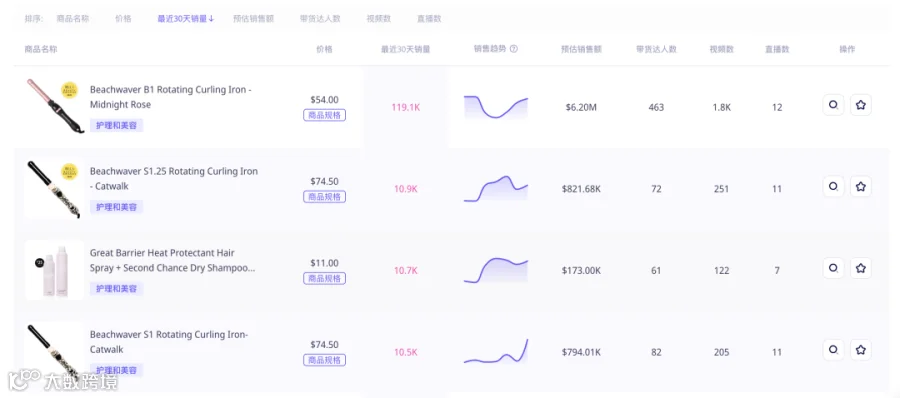 根据TikTok第三方数据分析平台EchoTik(https://echotik.live)的分析,近一个月在美国站销量快速上升的商品中,有一些标品适合做全托管,比如:开罐器、玩具、水杯、卷发棒、直发梳等。