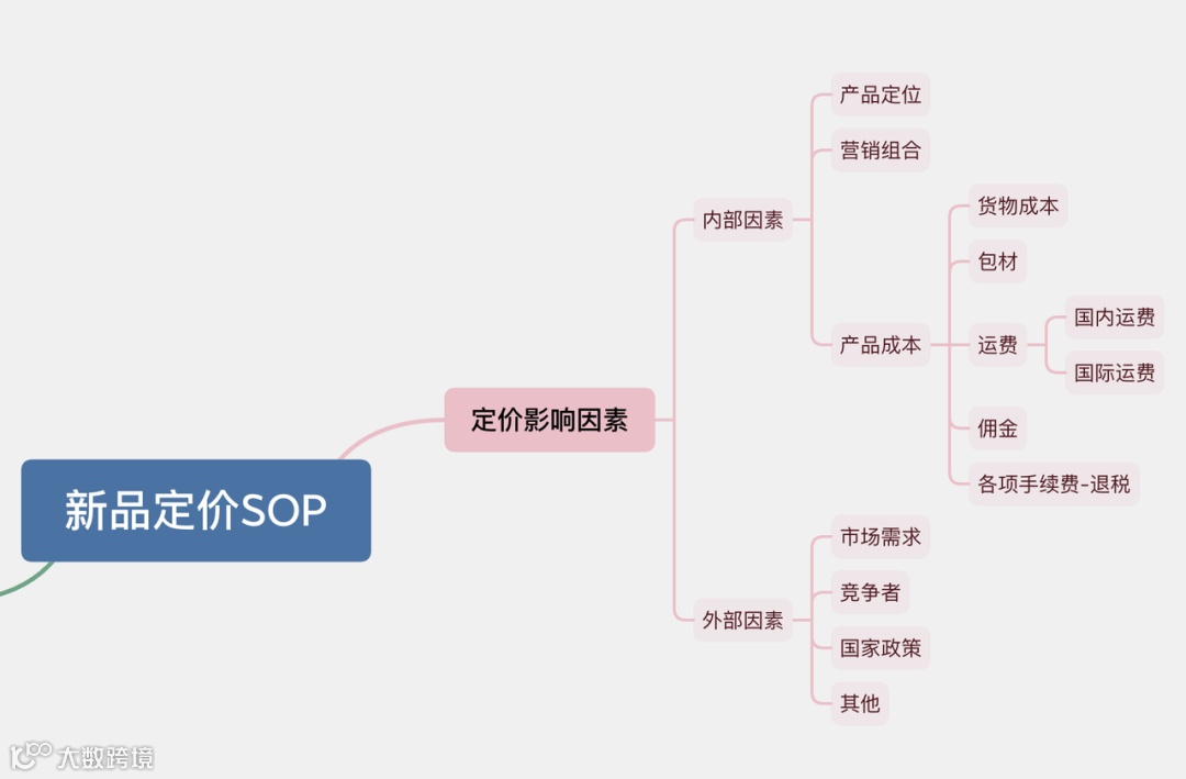 影响定价主要因素分为两大类:内部因素和外部因素。内部因素主要围绕产品定位、营销组合、产品成本展开;外部因素包括:市场需求、竞争者定价、国家政策及其他因素。