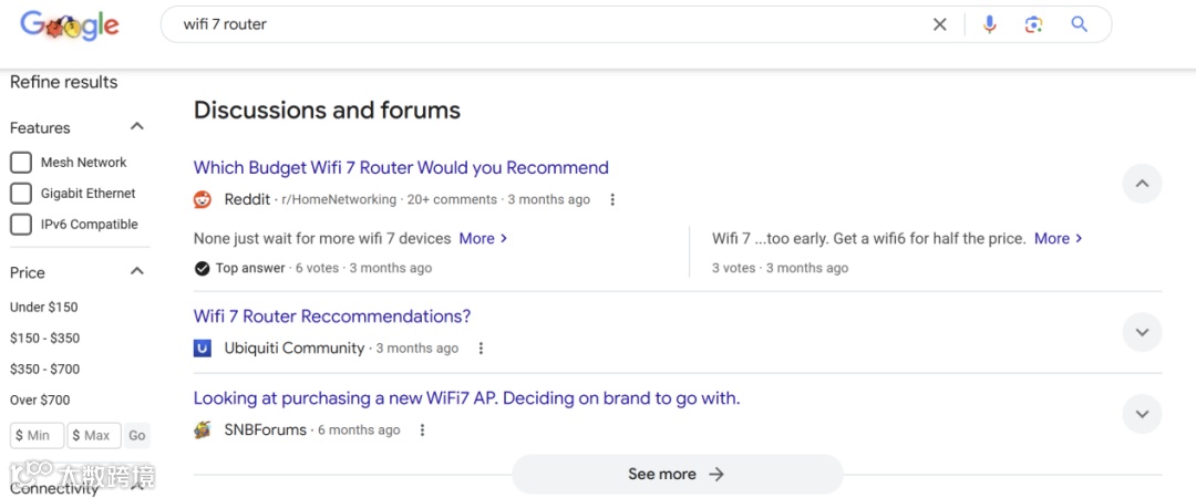 随着UGC内容越来越被Google“喜欢”,其内容在Google搜索结果的“Discussions and forums”板块频繁出现,用户可以直观的看到部分答案。