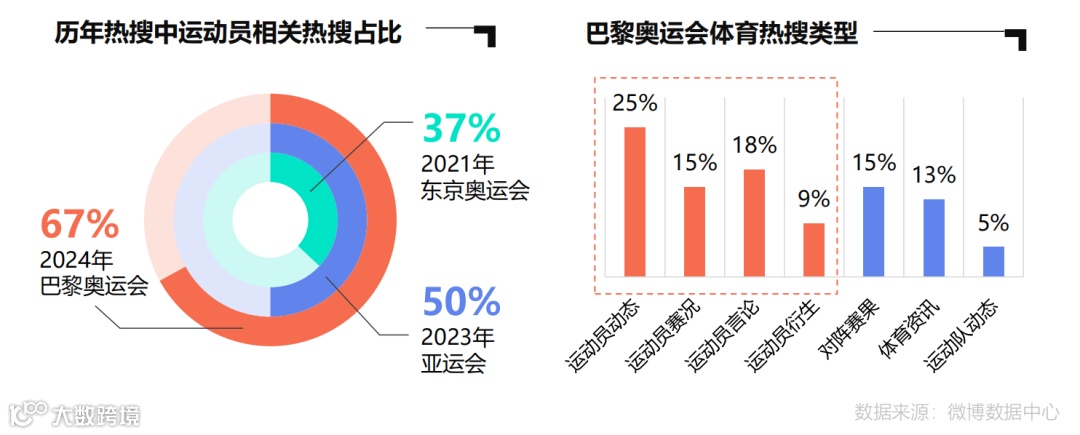 2024年,微博的体育赛事博文量同比增速高达227%,兴趣用户量超过4.3亿,电竞兴趣用户量也达到了1.2亿+。从2021年东京奥运会及各项国际赛事,到2024年巴黎奥运,微博热搜中运动员相关的热搜占比从37%提升到了67%。