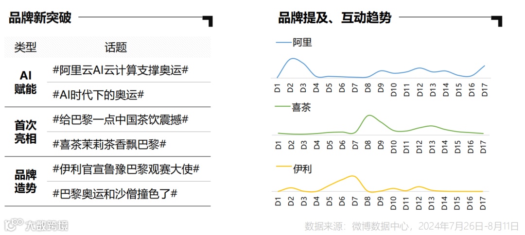 例如在奥运期间,运动、快消、乳品等众多品牌在微博上发布助威曲、发起活动,与用户一起为运动员加油,第一时间与运动健儿互动,这些举措都是既提升了品牌的曝光度,也加深了体育赛事爱好者对品牌的认同。