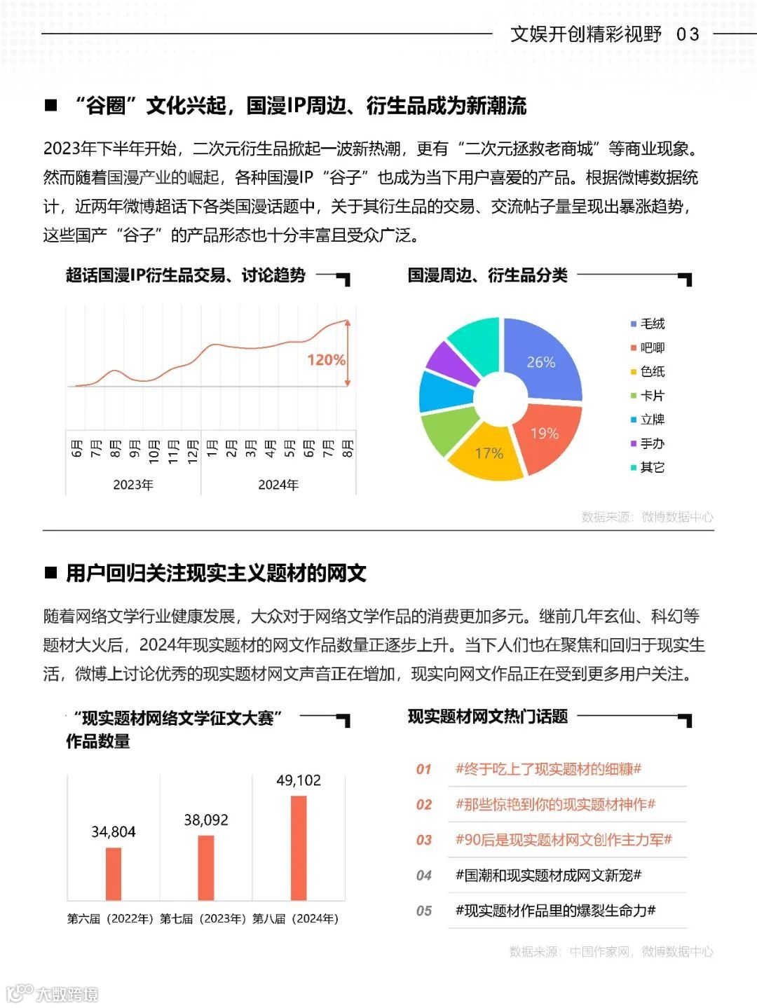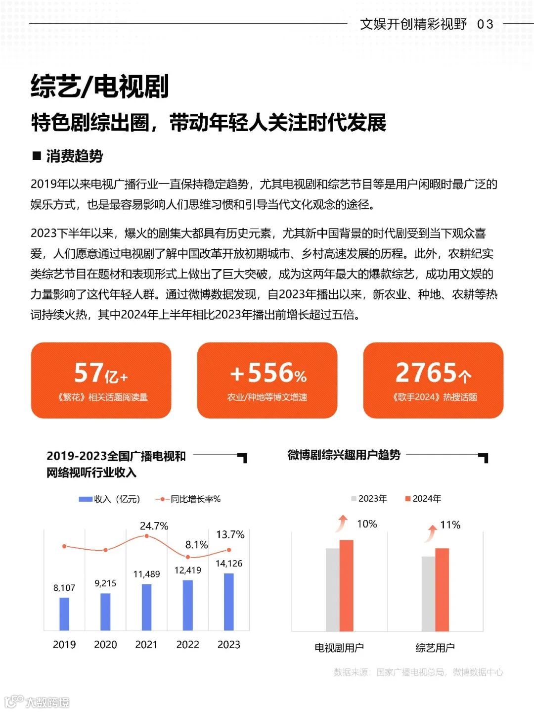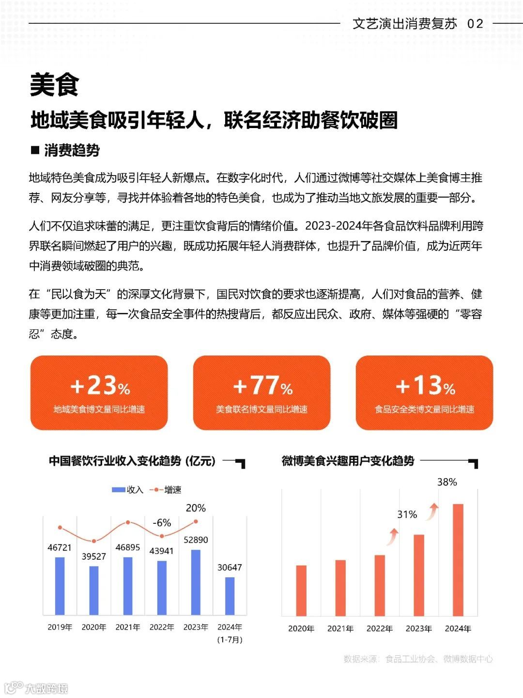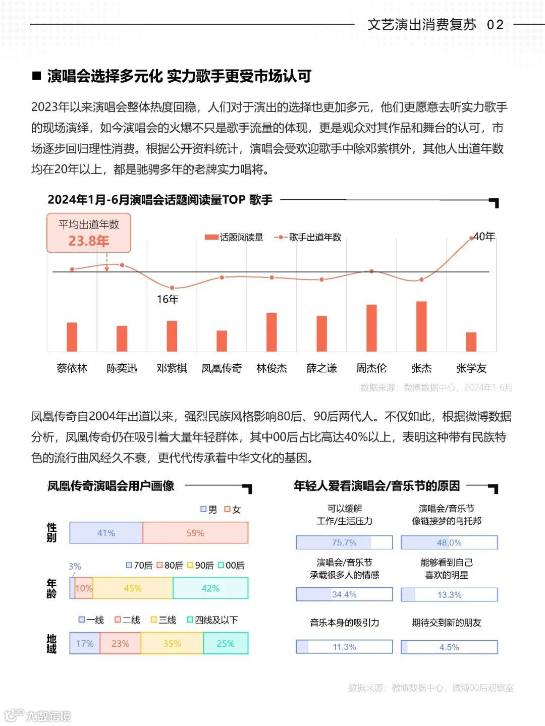 2023至2024年,随着中国经济的全面复苏,文旅演出消费呈现强劲增长。国家文旅部预测2024年全国旅游收入可达6.79万亿,同比增长38.3%。微博数据显示,旅游和观影成为过年新热潮,旅游热点同比增长10.8%,电影、剧艺霸榜热搜。