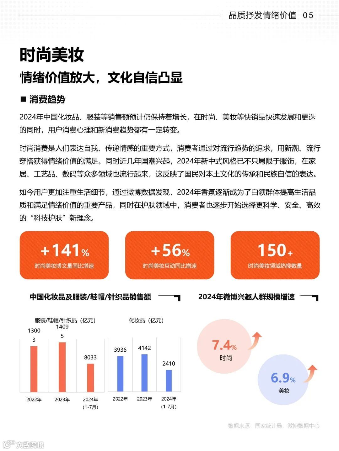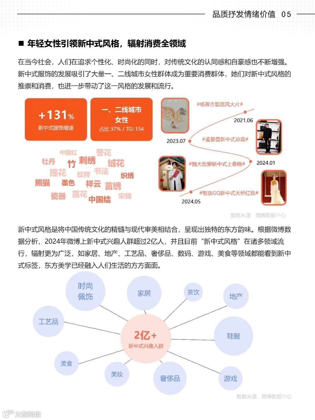 国潮的兴起带动了年轻人对新中式风格的喜爱,这一趋势已从服饰扩展至家居、工艺品、数码等多个领域。香氛经济的火爆和科技护肤的流行,消费者追求生活品质和个性化表达。