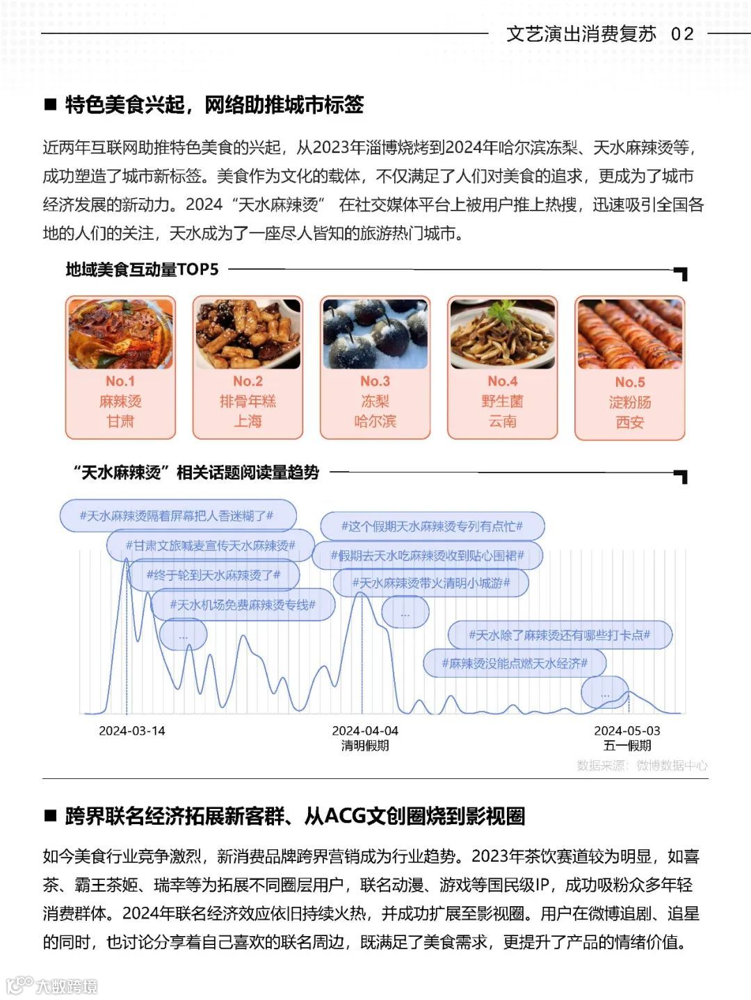 地域特色美食在微博用户的日常生活中占据重要地位。从淄博烧烤到哈尔滨冻梨,特色美食不仅满足了味蕾,更成为推动地方文旅发展的重要力量。联名经济的兴起,如茶饮与动漫、游戏的跨界合作,成功拓展了年轻消费群体,提升了品牌价值。