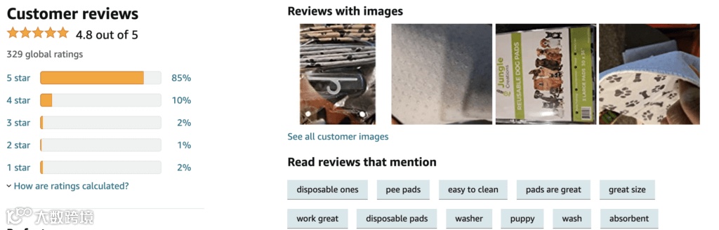 产品评论/评级:此数字位于标题和品牌名称下方;它显示了你的产品的总体评分以及收到的评论数。