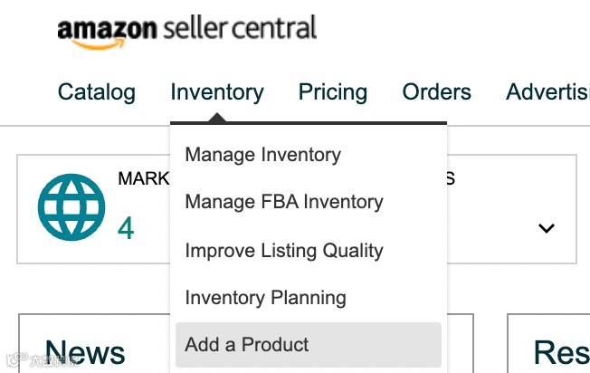 在亚马逊卖家中心创建新的产品详细信息页面很简单。首先,点击库存菜单栏,然后单击“添加产品”。