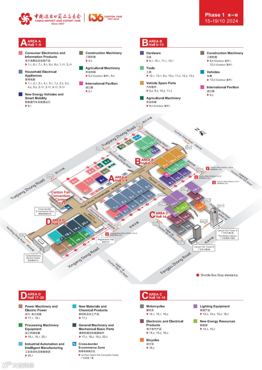 开车注意:广交会展馆(A、B、C、D区)实施交通管制,除持有广交会车证的车辆外,禁止其他车辆进入。