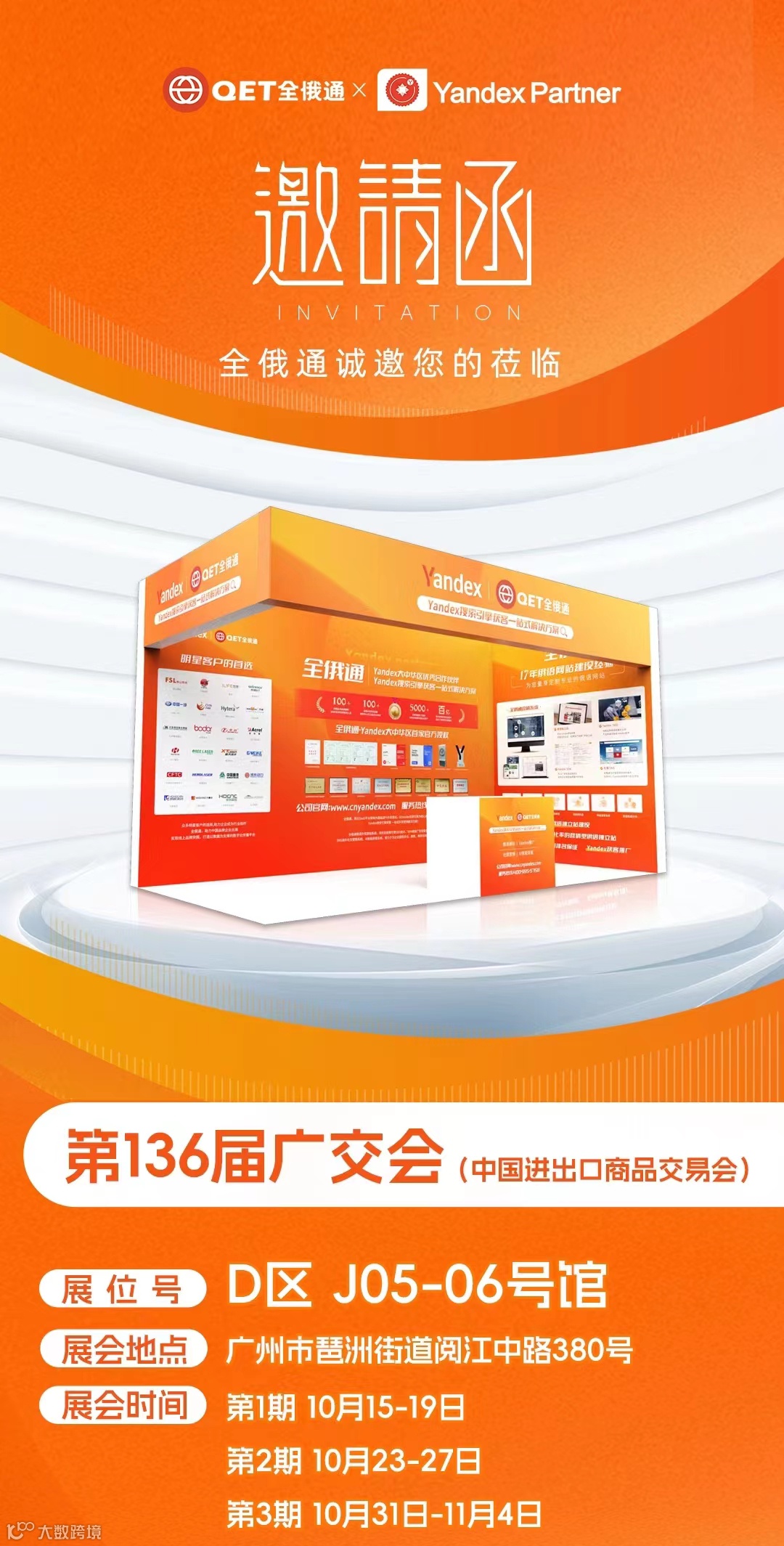 欢迎新老客户和各界好友莅临Yandex全俄通-华南运营中心展位交流,我们将与您进行深入探讨俄罗斯市场+中亚五国出海资讯,助您解决俄罗斯收款问题及出海难点,提供更具竞争力的“端到端”综合出海解决方案。