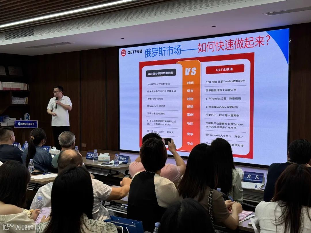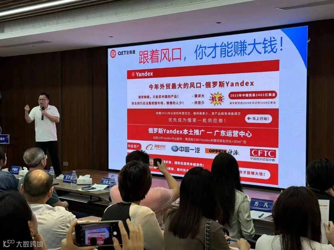 紧接着,东莞市商务局对外贸易科副科长叶敏杰副科长解读了最新的粤贸全球政策,俄罗斯Yandex广东运营中心水山先生分析了俄罗斯目前的电商环境和运营模式,广东礼德展览有限公司宣传运营总监彭瑜和境外展项目负责人强振分别推介了目前俄罗斯本土市场比较有影响力的两个展览项目:俄罗斯国际礼品及消费品展览会和俄罗斯国际车展