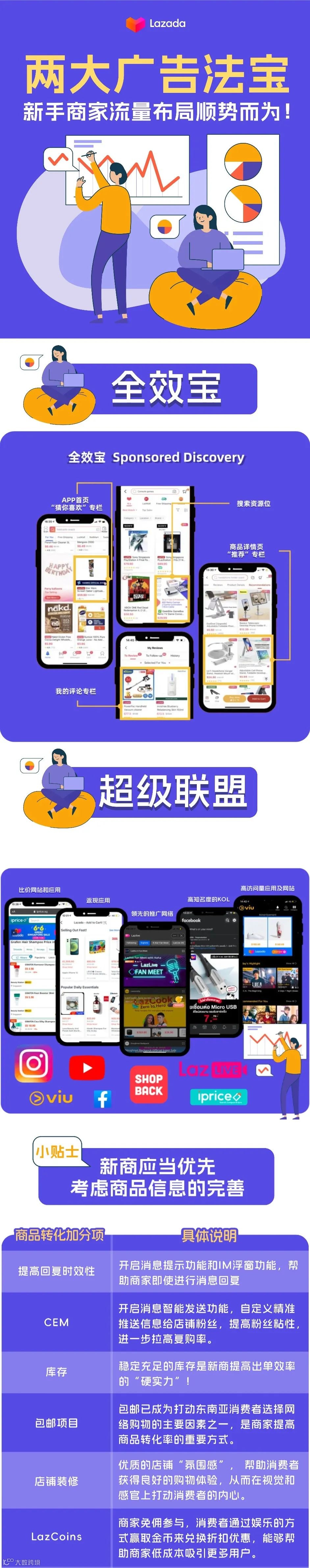 据统计,Lazada日均用户搜素量高达1600万,49%使用搜索的用户最终都会购买该商品;更有71%的用户通过推荐功能成功下单。为了更好地帮助商家实现商品的曝光和转化,Lazada通过建立「全效宝」帮助商家了实现“人找货”和“货找人”的两种营销场景,包含以用户“搜索行为”定位的「直通车」,和以“兴趣行为”为导向「超级推荐」两种资源位。
