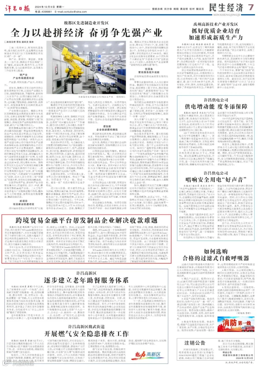 今年1至10月,许昌市发制品出口总额达136亿元。发制品作为许昌市外贸支柱产品,在非洲市场占有率超过70%。出口发制品的许昌中小微企业面临哪些跨境支付难题?XTransfer如何解决?对此,中共许昌市委机关报《许昌日报》深入本地发制品产业一线,并报道指出,XTransfer创新推出的本地收款账户服务,帮助许昌外贸企业安全、合规、便利且低成本地收取非洲市场的贸易款项。