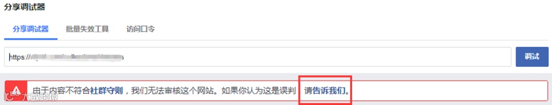 表示链接被禁用,请直接点击“告诉我们”,向Facebook提交申诉;或者从以下链接申诉: