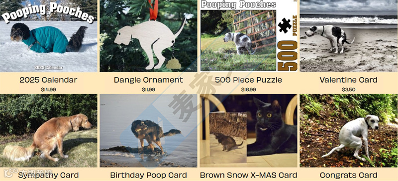 Pooping Pooches挂历或图片系列以其独特的幽默视角脱颖而出,以狗在风景如画的背景中拉屎的场景为主题,通过幽默和讽刺的方式,展现了狗狗们在各种美丽景色中的“煞风景”行为。每年,Gag Gifts 会挑选12幅这样的照片,作为挂历的月份页面,汇编成一套完整的Pooping Pooches挂历,让这份幽默与创意跨越四季。如今,Pooping Pooches已从一个创意挂历成为一种风靡全球的文化现象,吸引了无数粉丝与爱好者的热烈追捧。它不仅仅是一种视觉享受,更是一种生活态度的表达,一种对平凡生活幽默以待的乐观精神。