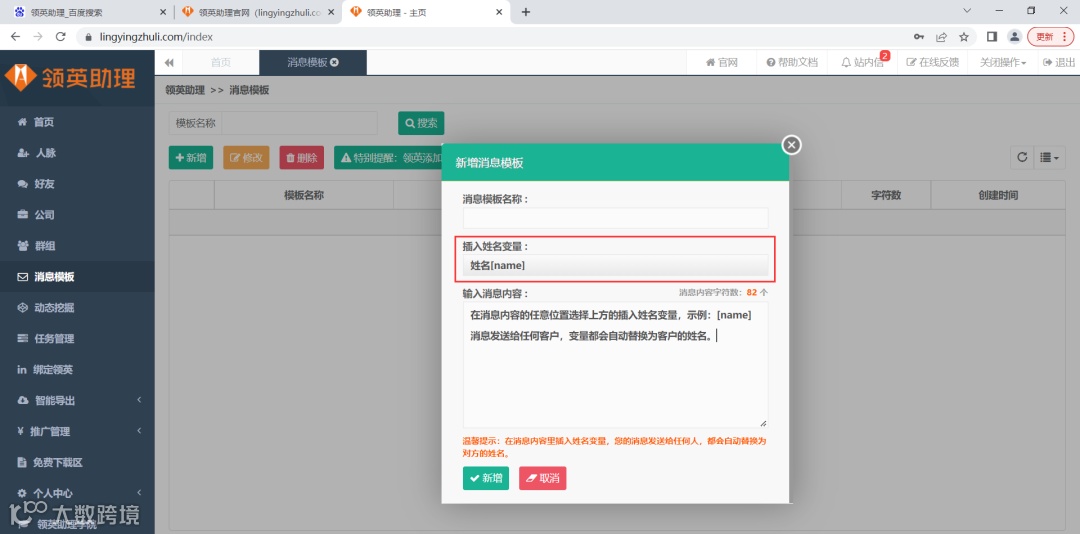 同时在发送消息这一块,我们也要事先对自己的领英好友进行归类分组,坚决不要做无效营销和骚扰营销。最后在消息里记得插入姓名变量,让它自动添加客户的名字,这些都可以借助刚才提到的领英助理来安全且高效率的完成。