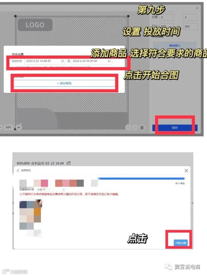 - 设置投放时间,添加商品,开始合图。