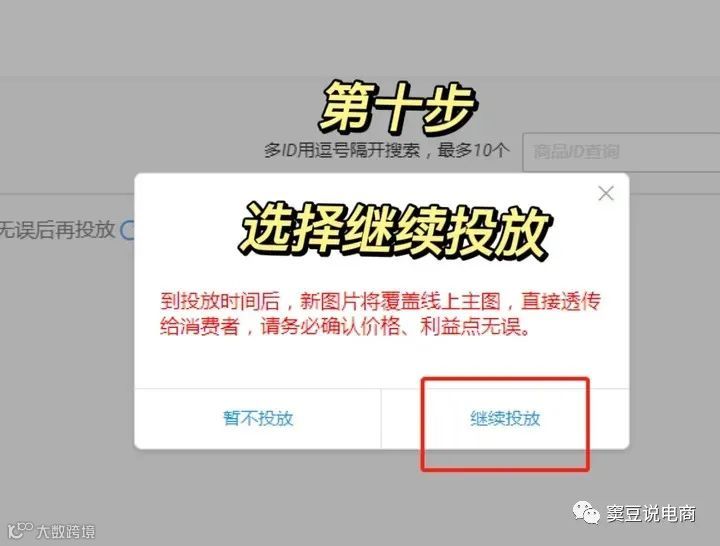 - 选择继续投放选项。