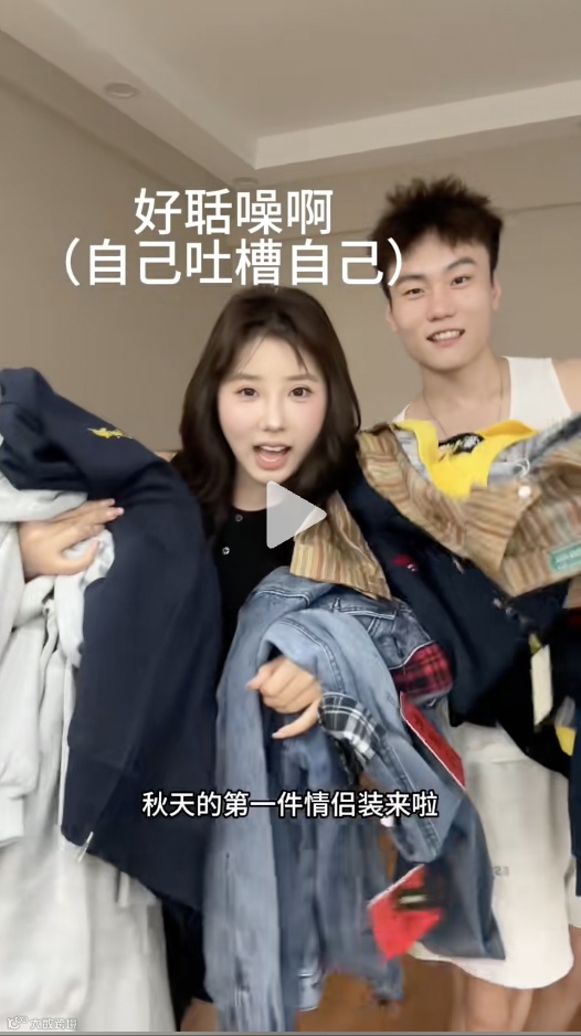 通过情侣或模特互动的形式演绎段子、展示产品是服装类带货常用的模式。此类视频既能突出产品的潮流属性,也能增强用户的观看趣味性。