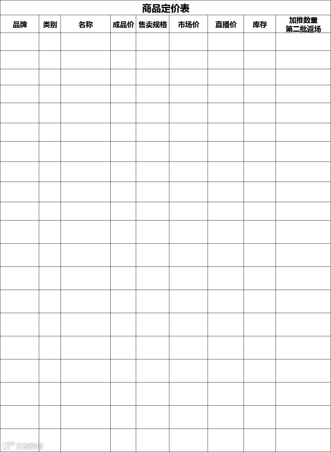 4. 直播前的商品定价表