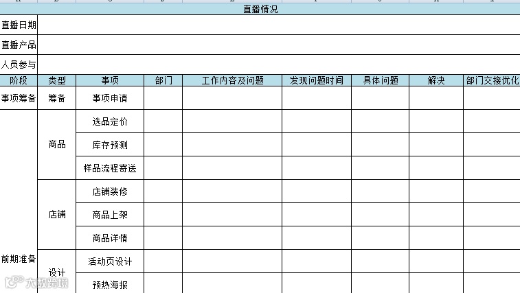 直播全流程必备14项实用表格清单