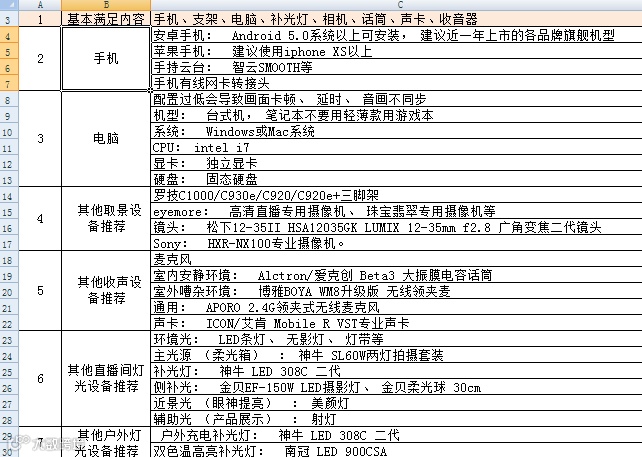 7. 直播设备清单