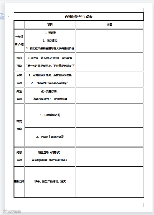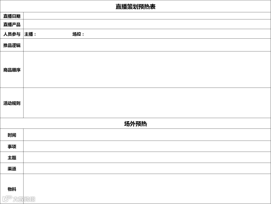 2. 直播策划预热表