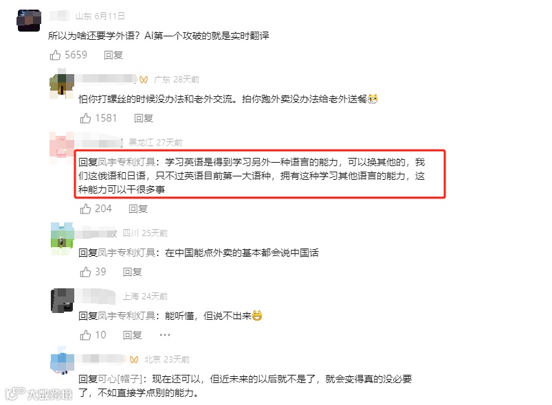 怎么样,是不是有很多朋友看到这里都有一种不谋而合的感慨:“AI技术首个攻破的就是实时翻译,英语不用学也行。”来看看网友们的不同见解: