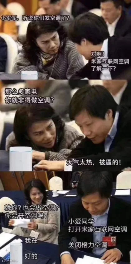 围绕这个热点在思考,同样都是制造业领域做产品的,有人高调喊话站队格力,新宠米粉甜蜜表白小米。要说起格力电器,空调界的老大哥,提起格力就如同提起空调界的“乔布斯”啊,董明珠率领下的格力电器,早已不是简单的制冷机器制造商,而是空调技术与品质的代名词。多年蝉联全球产销量第一,格力用实际行动证明了“中国制造”的硬核实力。说到小米,大家的第一印象可能是手机、智能家居,但这几年,小米不甘寂寞,在雷军的带领下玩起了跨界,从第一季度的xiaomi SU7汽车上市,到第二季度炎炎夏日中空调市场多了这位智能制造领域的“智能新贵”。小米空调以其智能控制、高性价比迅速占领市场,特别是年轻人的心。不论是在消费者角度,还是作为一名深耕产品领域的“产品人”去解析具体的产品模式,小米的加入,更像是一股清流,让传统空调大佬们感受到了“后浪”的冲击。