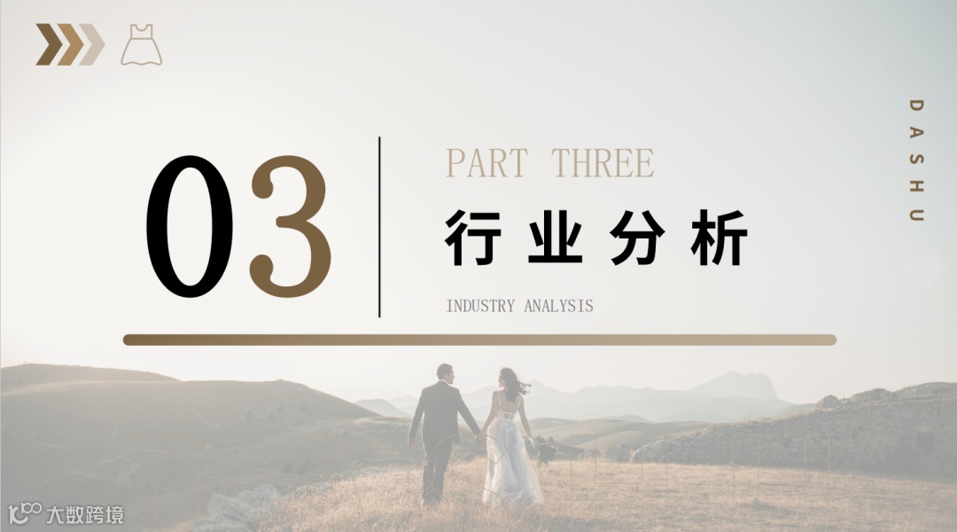本报告目的在于向关注此市场的销售商和企业提供最新的市场动态和深入分析。大数跨境致力于通过对该行业的深入探讨,帮助商家更精准地把握消费者需求和婚礼市场发展脉络及未来趋势,以便对市场的波动做出恰当的判断和策略调整。