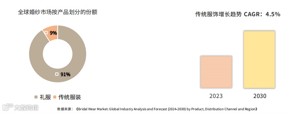 市场多样化和个性化需求:美国市场的多元化需求,以及Z世代对个性化、绚丽、亮色婚纱的偏好,使得婚纱出海需要更加关注市场细分和产品创新。