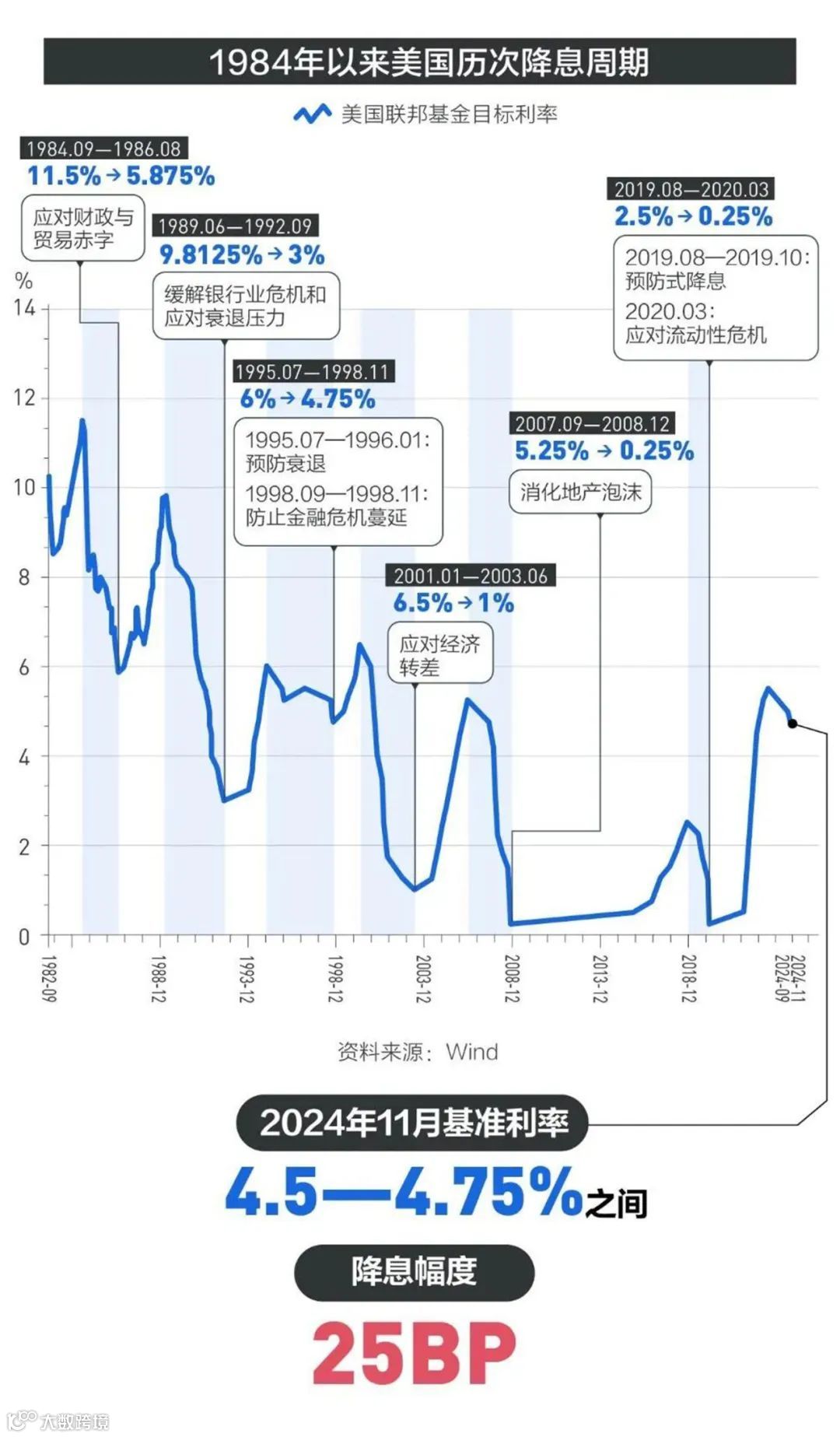 2024年下半年,美联储在货币政策上做出重要调整。9月18日,美联储宣布将联邦基金利率目标区间下调50个基点,降至4.75%-5.00%之间。