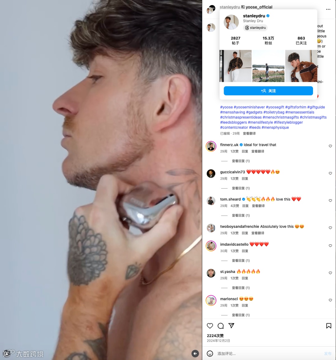 一方面Yoose在内容创作上给予充分自由,让他们讲产品自然地融入到日常场景或自己熟悉的领域——例如“MINI剃须刀如何帮助我应对临时的约会”、“出差前准备太多随身物品的烦恼”等。