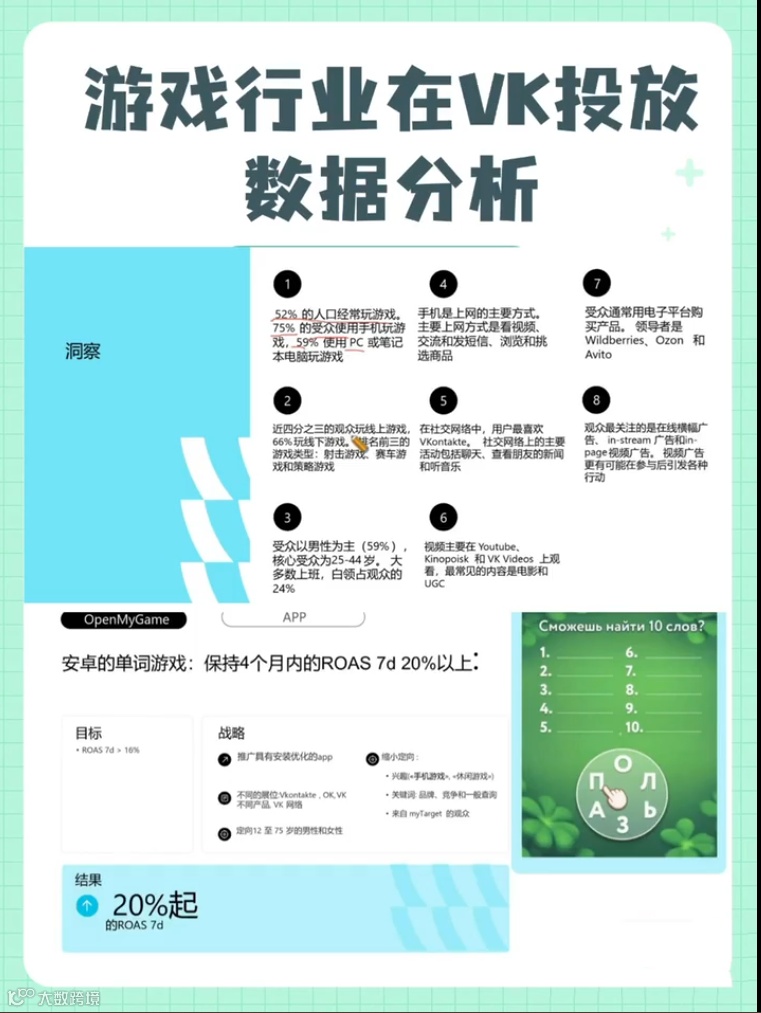 - 用户偏好与习惯:56% 的俄罗斯游戏受众使用智能手机玩游戏,俄罗斯用户喜爱的游戏类型包括动作类、沙盒类、MMORPG、街机类、RPG 游戏以及休闲游戏等,且俄罗斯玩家对游戏的忠诚度较高,愿意在游戏中花费较长时间和进行消费.
