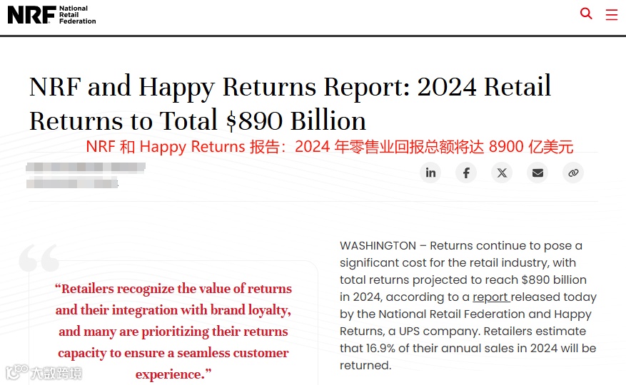 12月初,美国零售联合会(NRF)和Happy Returns退货管理公司联合发布了一份2024年零售业退款分析报告。
