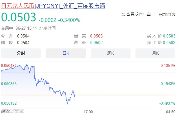 日元兑人民币汇率破5!至100日元兑5.03人民币。