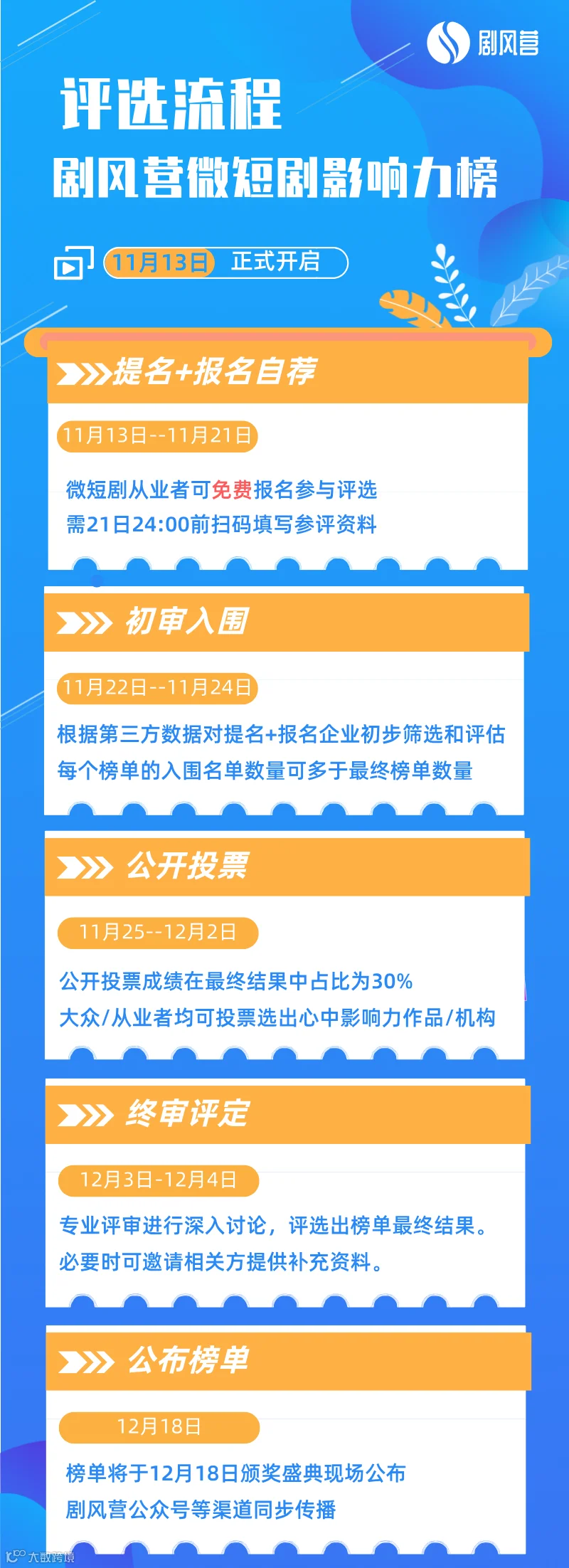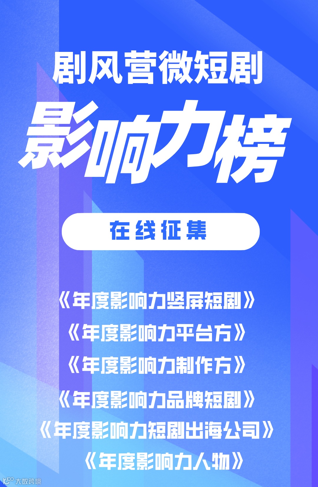 作为短剧行业自媒体,剧风营致力于与行业一起探寻微短剧领域的代表作品和黑马企业,年关将近我们策划推出《剧风营微短剧影响力榜》系列榜单。希望通过梳理过去一年微短剧行业的发展成果,展现微短剧行业亮点,洞察行业趋势。最终登上榜单的多元主体则是的最能代表微短剧行业增长价值的案例,他们,组成了在2024逆势增长的“影响力榜样”。