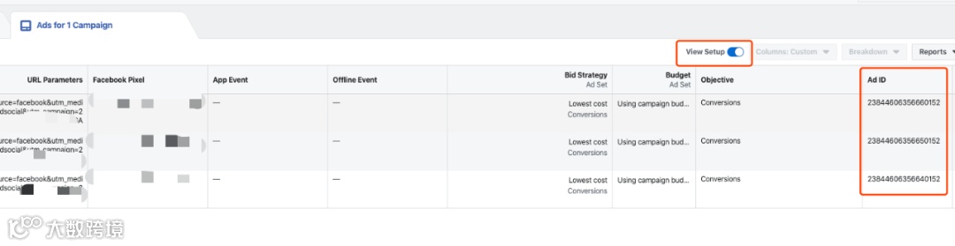 现在,你应该会在右侧弹出的广告ID列中看到一系列17位数字,每个数字都与您的唯一广告系列相对应。