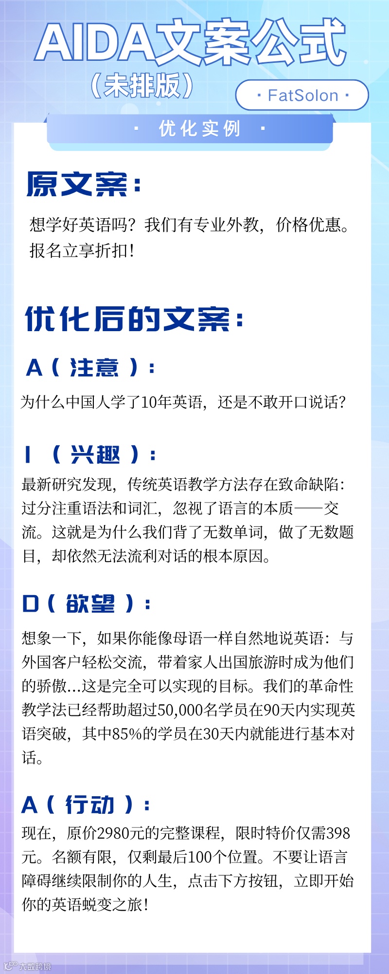 - 效果需数据验证,要建立A/B测试习惯,持续优化文案内容;